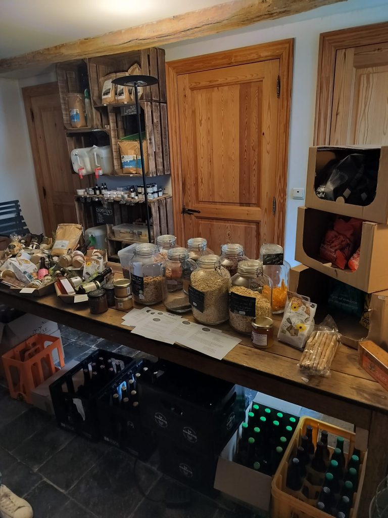 Située en plein cœur du modeste hameau de Awagne, dans la campagne dinantaise, l’épicerie nourrit les familles des villages environnants. C’est pas moins de 650 références différentes qui assurent une grande partie de leurs courses alimentaires ! Outre les fromages et les légumes locaux, on peut y retrouver notamment les bons Oeufs du Verger, les sucreries de Chocamel, mais aussi des boissons locales comme le vin du chateau de Bioul ou encore les produits d’exception de la pisciculture Le Chêneau.